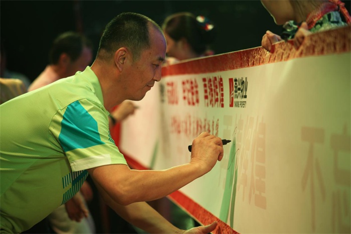 現(xiàn)場來賓在“祝福長卷”上題寫祝福語