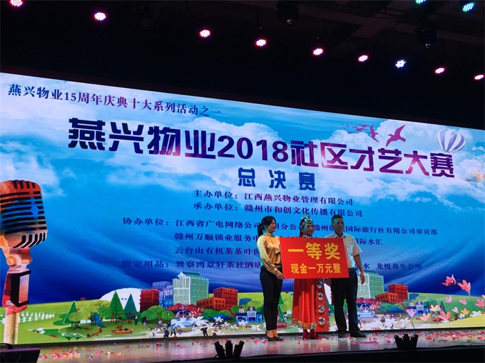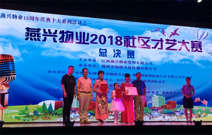 2018年9月2日晚上,江西燕興物業(yè)管理有限公司第五屆社區(qū)才藝大賽總決賽,在贛州市章貢區(qū)奧林匹克廣場虔州大舞臺隆重舉行。贛州市中小企業(yè)管理局副局長卓秋生,贛州市章貢區(qū)民營企業(yè)管理局局長鐘群,贛州市中小企業(yè)協(xié)會、章貢區(qū)民營企業(yè)聯(lián)合會會長歐陽宇俊等領(lǐng)導(dǎo)嘉賓蒞臨指導(dǎo),燕興物業(yè)董事長劉燕,總經(jīng)理劉南斗,副董事長陽敏,副總經(jīng)理徐桂香、張衛(wèi)東等公司領(lǐng)導(dǎo),以及公司員工、小區(qū)業(yè)主、市民等近千人在場觀看。