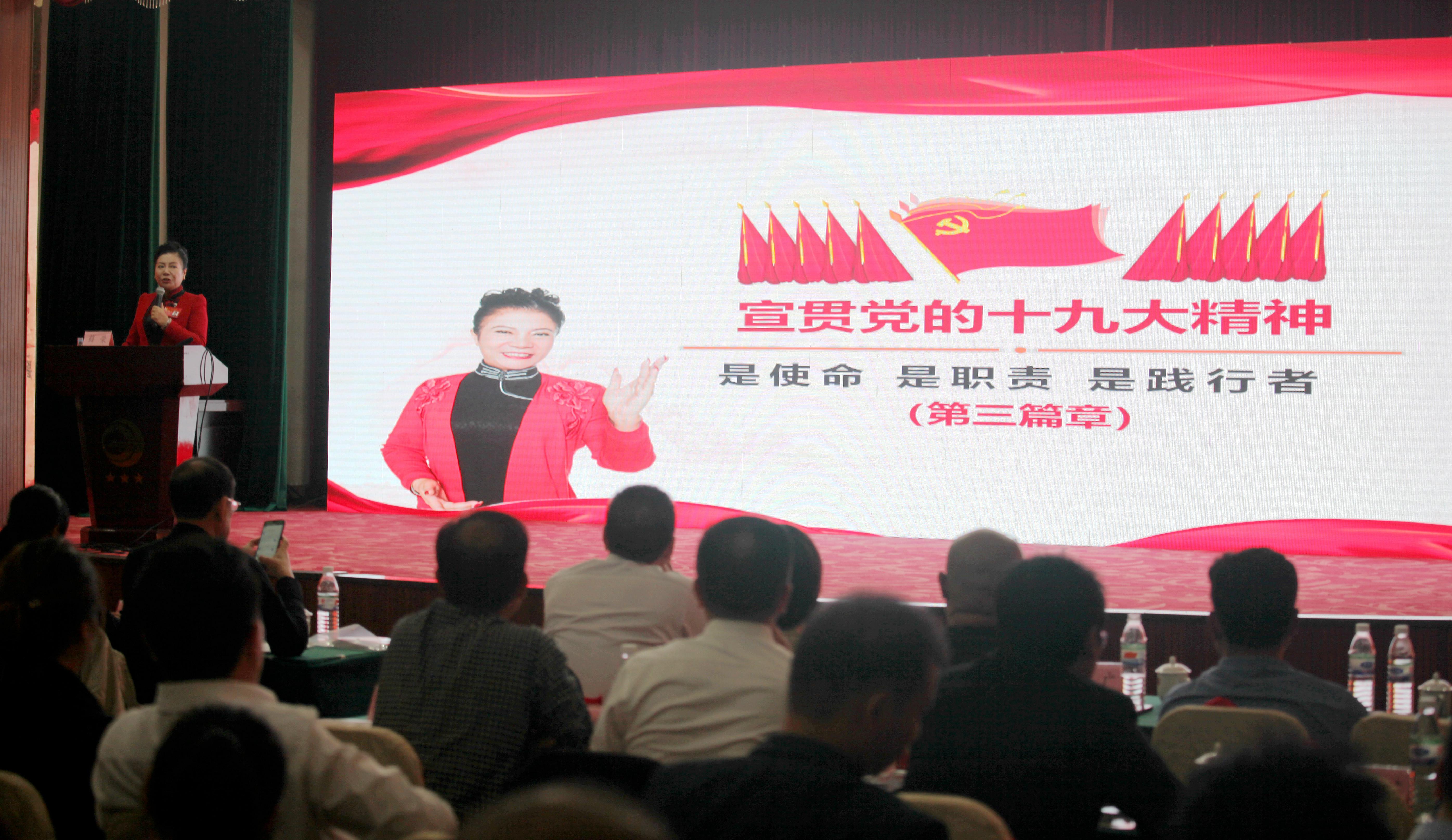 報告會上,薛榮生動地講述了自己創業的過程及黨建引領企業發展的過程;講述了如何從下崗職工成長為擁有近5萬名員工的老板;講述著她赴北京參加19大的所見所聞所歷;講述了黨的歷次代表大會鮮為人知的經歷;講述了她四次被習總書記接見的感動;最后以深情的詩朗誦《我是黨的女兒》,表達著對黨的熱愛之情,結束了此次精彩的宣講十九大演講。
