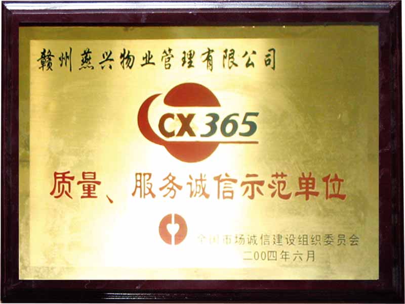 CX365質(zhì)量、服務(wù)誠信示范單位