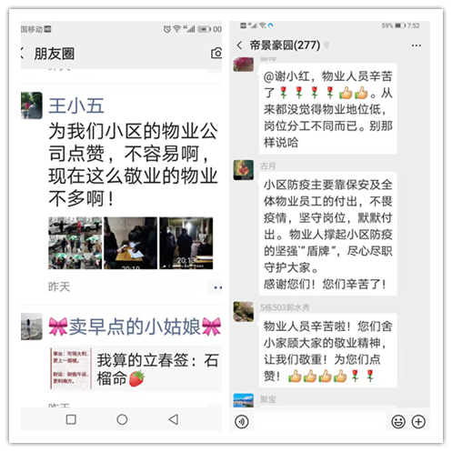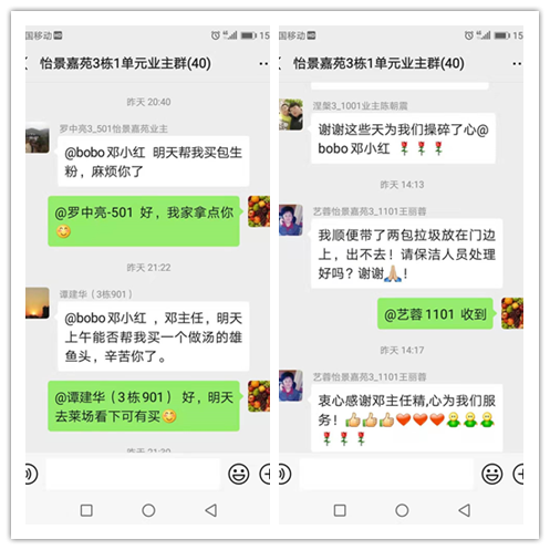 “對(duì)我們隔離戶來說,雖有政府配發(fā)食物,但生活總還有些個(gè)性化的需要,小紅經(jīng)理總是耐心的記下,按照大家的需求幫忙購買放在值班室甚至送到家門口,這貼心的服務(wù)讓我們沒有負(fù)擔(dān),可以安心地在家自覺隔離?!眮碜遭凹卧沸^(qū)三棟一單元的住戶李先生說道。