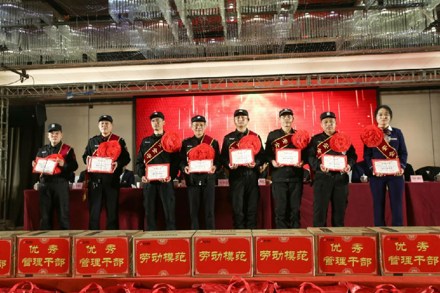 集團副總經(jīng)理徐桂香宣讀《關于表彰2019年度先進個人、先進集體的決定》:南昌分公司、永修分公司等16個分公司評為“優(yōu)秀分公司”;贛州商會大廈、贛州市稅務局等10個項目評為“優(yōu)秀示范項目”;鐘德全、鄧小紅、郭小蘭3人評為“勞動模范”;舒星、徐理文等10人評為“優(yōu)秀管理干部”;徐振民、黎華等21人評為“保文創(chuàng)衛(wèi)標桿”;吳子青、梁傳華等58人評為“服務之星”;劉寧生、余樟春等33人評為“愛崗敬業(yè)之星”;邱桂華、陳世洪等10人評為“安全守護之星”;曹運莉、李冬梅等11人評為“優(yōu)秀志愿者”;盧建宏、肖忠良等13人評為“工會積極分子”。