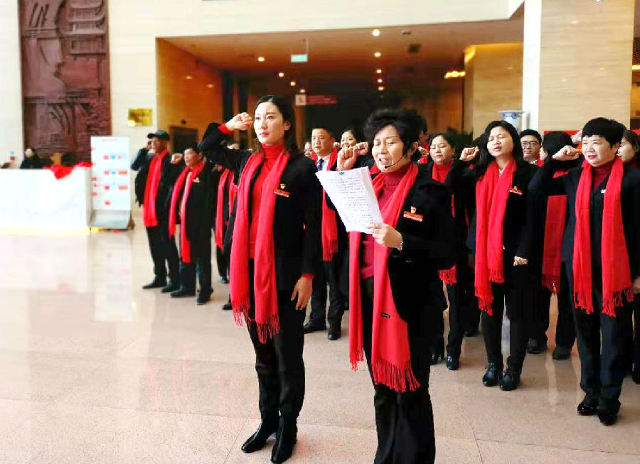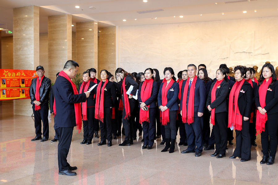 燕興集團黨委在第二批“不忘初心牢記使命”主題教育系列活動內容豐富,對2019年的預備黨員曹運莉、陽敏同志和新進的流動黨員進行了授黨徽和授燕興黨委胸牌儀式;預備黨員分別講述了發生在蘇區時期贛南的真實故事《八子參軍》、《馬前托孤》;預備黨員在莊嚴的黨旗下舉手宣誓,全體人員集體重溫入黨誓詞后,跟隨講解員參觀了贛南蘇區歷史展館。
