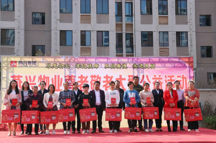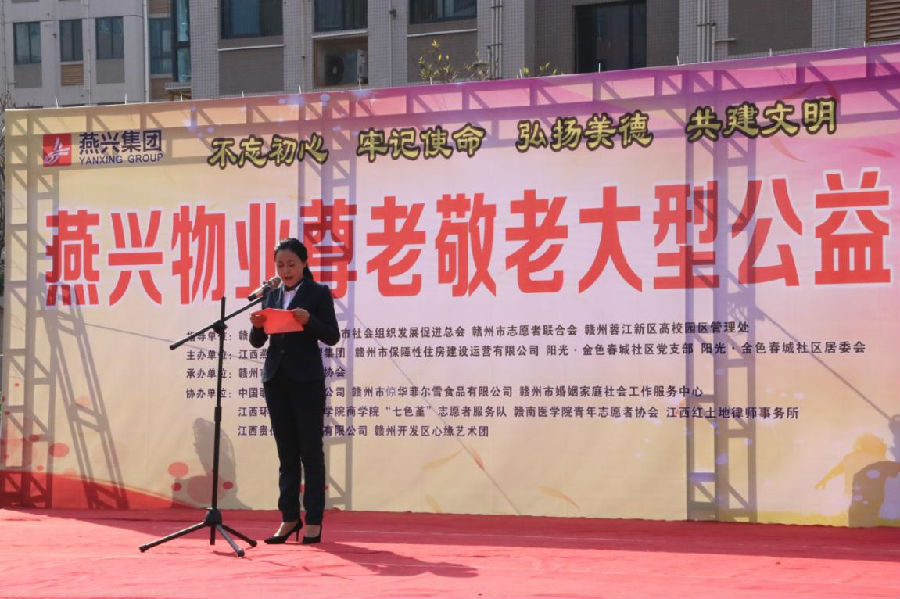 在舉國認(rèn)真學(xué)習(xí)宣傳貫徹黨的十九屆四中全會(huì)精神之際,以及深入推進(jìn)“不忘初心、牢記使命”主題教育之時(shí),2019年11月9日,燕興集團(tuán)黨委聯(lián)合贛州市慈善總會(huì)、贛州市合眾公益協(xié)會(huì)、贛州市保障性住房建設(shè)運(yùn)營有限公司、陽光金色春城社區(qū)黨支部、社區(qū)居委會(huì)在陽光金色春城保障性住房舉辦“燕興物業(yè)尊老敬老大型公益活動(dòng)”,進(jìn)一步堅(jiān)定“感黨恩聽黨話跟黨走”的信念,大力弘揚(yáng)中華民族尊老敬老愛老助老的傳統(tǒng)美德。
