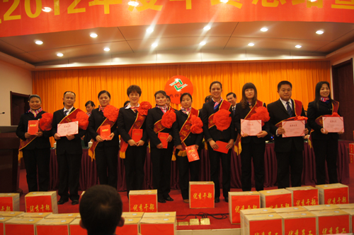 大會還宣布了榮獲2012年度先進(jìn)集體和117名先進(jìn)個(gè)人的名單,并在歡快的頒獎曲中為先進(jìn)集體公務(wù)員小區(qū)、石城縣行政服務(wù)中心頒發(fā)了獎牌、獎金,為優(yōu)秀員工佩戴了綬帶、紅花,頒發(fā)了榮譽(yù)證書、獎品,公司領(lǐng)導(dǎo)與獲獎人員愉快地合影。其間,大會還安排了抽獎活動,共有13人中獎,領(lǐng)取了獎品。最后,在悅耳動聽的《燕興之歌》聲中園滿結(jié)束了大會議程。