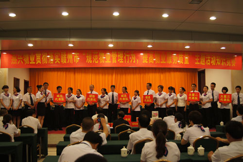 為全面貫徹落實《贛州市開展“規范物業管理行為,提高物業服務質量”主題活動實施方案》的通知精神,提高員工物業管理專業知識和業務能力,在員工中掀起“比、學、趕、幫、超”的學習熱潮,2013年6月8日下午14:20分,燕興物業在贛州賓館二樓會議廳舉辦了貫徹落實贛州市“規范物業管理行為,提高物業服務質量”主題活動的知識競賽。