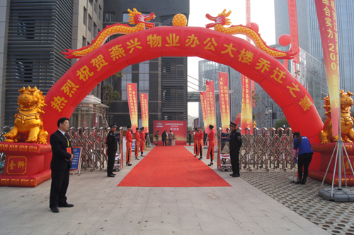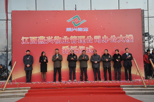 2013年12月26日燕興物業成立十周年紀念日,也是燕興物業辦公大樓喬遷大喜日子,贛州商會大廈一片火紅。火紅的拱形大門、火紅的地毯、火紅的簽名薄、火紅的標語映襯著前來恭賀喬遷嘉賓們喜慶的臉。