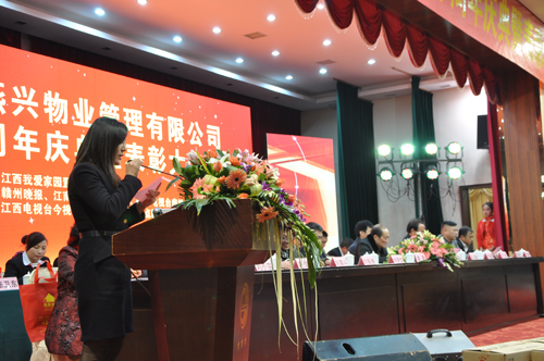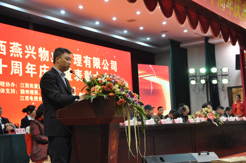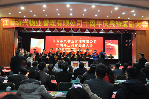 2013年12月26日下午2時,參加燕興物業成立十周年慶典表彰大會的領導、嘉賓和員工們已陸續來到贛州賓館一號會場,在嘹亮的國歌聲中大會由吉安商會會長劉振德宣布開始。