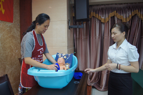 上圖:學員在做模擬嬰幼兒起居護理實操