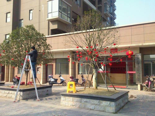 圖:象湖桃源小區給綠樹掛上紅燈籠