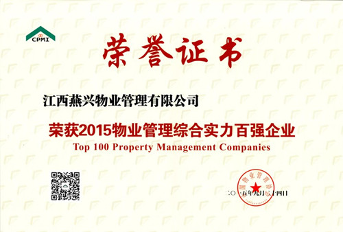 江西燕興物業(yè)榮獲2015物業(yè)管理綜合實力百強企業(yè)稱號