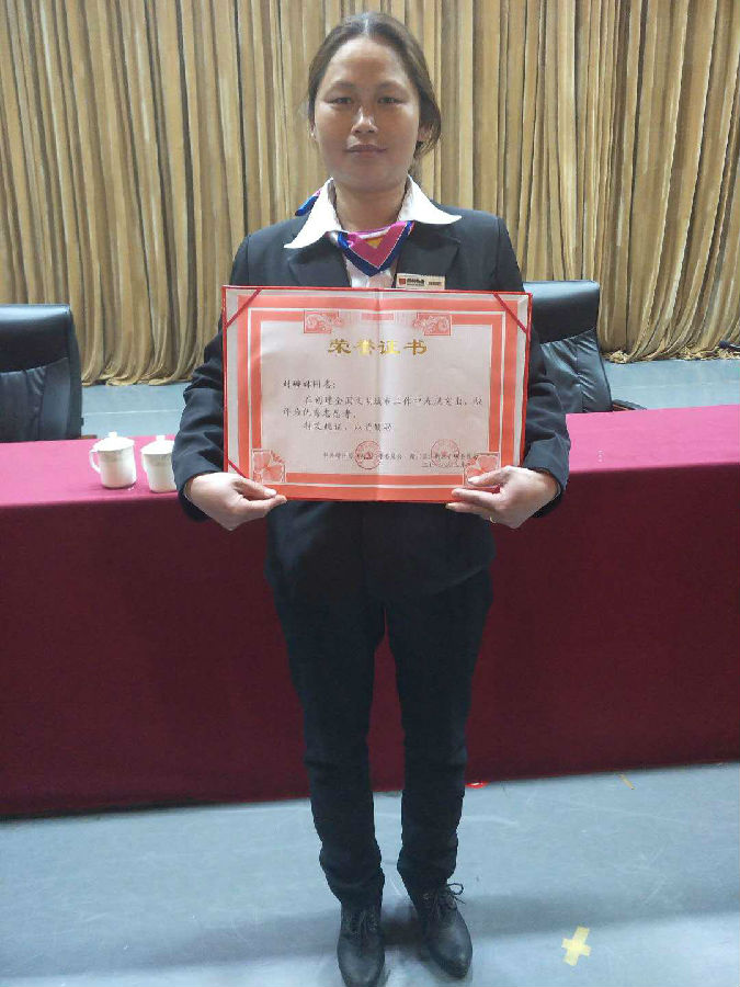 陽光·金色春城物管員劉珊林榮獲蓉江新區“創建全國文明城市工作”優秀志愿者榮譽稱號