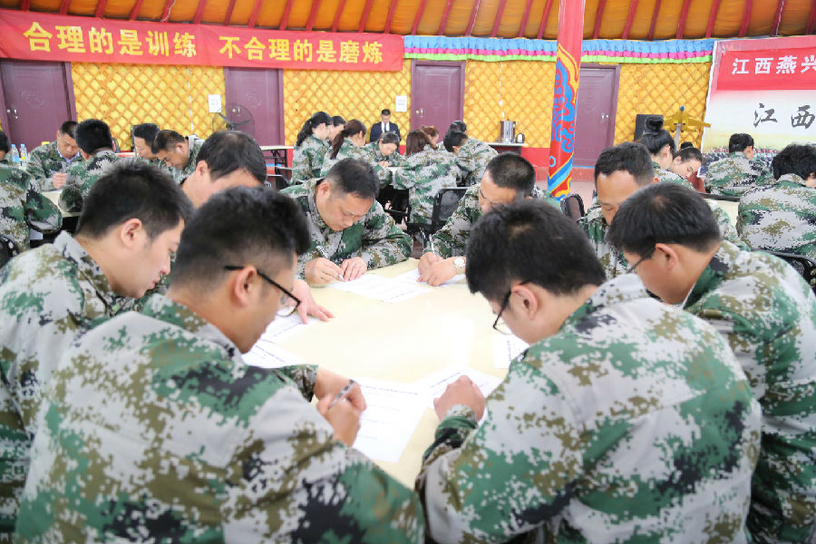 為期三天的封閉式軍事化培訓(xùn),以“提素質(zhì)、強(qiáng)意識(shí)、重執(zhí)行”為主題,旨在全面提升公司管理人員的精神狀態(tài)、綜合素質(zhì)和工作能力,以更好的適應(yīng)公司創(chuàng)新發(fā)展和新時(shí)代現(xiàn)代服務(wù)業(yè)發(fā)展的需要。培訓(xùn)班專門邀請(qǐng)了公司主要領(lǐng)導(dǎo),以及公司職能部門負(fù)責(zé)人、基地教官給大家授課,集中學(xué)習(xí)了《同心同行同贏》《非暴力溝通》《如何打造堅(jiān)實(shí)的基層團(tuán)隊(duì)》《物業(yè)服務(wù)案例分析》《責(zé)任重于泰山——安全防范》《高效演講》等課程,同時(shí)開(kāi)展了隊(duì)形隊(duì)列、團(tuán)隊(duì)拓展(有軌電車、挑戰(zhàn)生死墻)、內(nèi)務(wù)整理等訓(xùn)練科目,使參訓(xùn)學(xué)員對(duì)燕興企業(yè)文化有了全新的認(rèn)識(shí),業(yè)務(wù)理論得到深化,精神意志得到錘煉,服務(wù)本領(lǐng)得到提升,團(tuán)體精神得到凝聚。