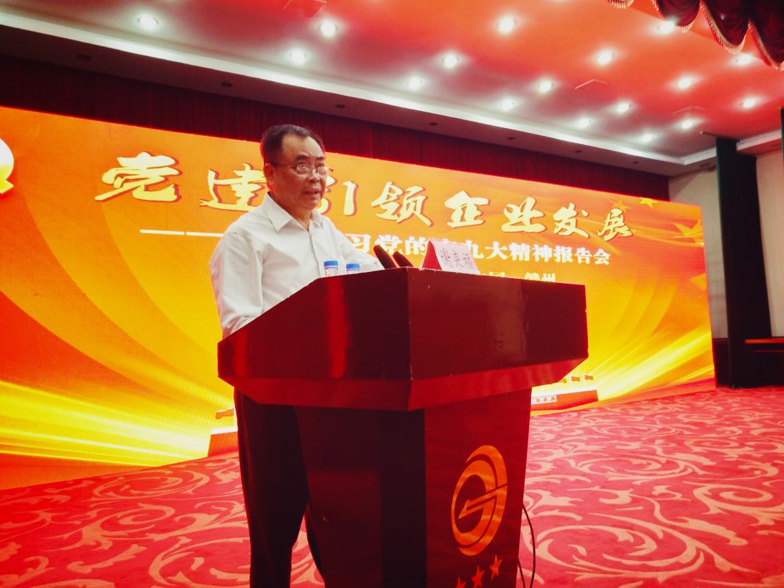 10月26日上午,由贛州市非公經(jīng)濟(jì)組織黨委、江西燕興物業(yè)黨委主辦的《黨建引領(lǐng)新發(fā)展——宣講黨的十九大精神報(bào)告會(huì)》在贛南賓館舉辦,黨的十九大代表、河南圓方集團(tuán)黨委書(shū)記、總裁、非公企業(yè)黨建學(xué)院院長(zhǎng)薛榮主講。全市各領(lǐng)域基層黨員干部共計(jì)500余人聆聽(tīng)報(bào)告。會(huì)議由贛州市委統(tǒng)戰(zhàn)部副部長(zhǎng)、贛州市工商聯(lián)黨組書(shū)記謝來(lái)福主持;江西燕興物業(yè)黨委書(shū)記、董事長(zhǎng)劉燕致辭。