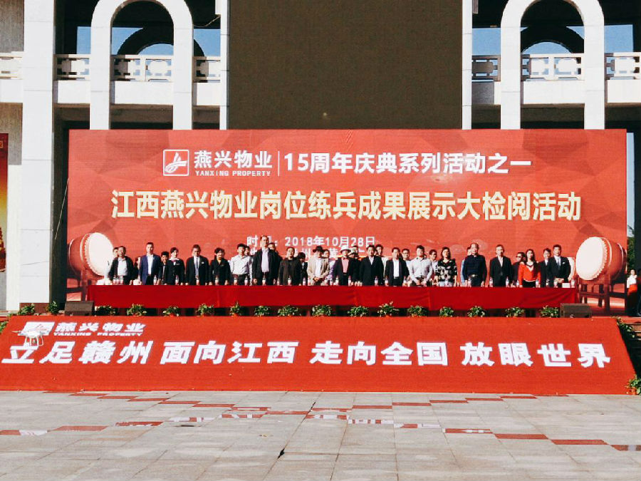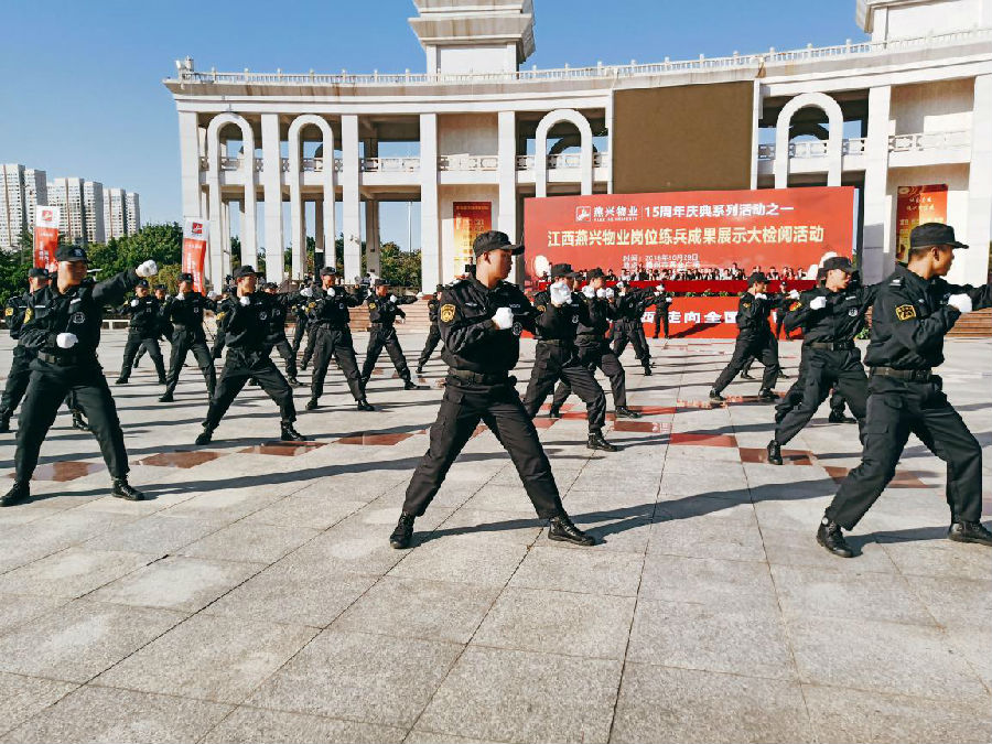 2018年10月28日,江西燕興物業管理有限公司在贛州市黃金廣場隆重舉行崗位練兵成果展示大演練活動。參檢員工以嚴整的隊姿和精湛的技能展示,匯報了崗位練兵的成果,展示了強大的綜合素質和良好的精神風貌。相關主管部門、行業協會和兄弟公司領導、業主代表等應邀參加活動。