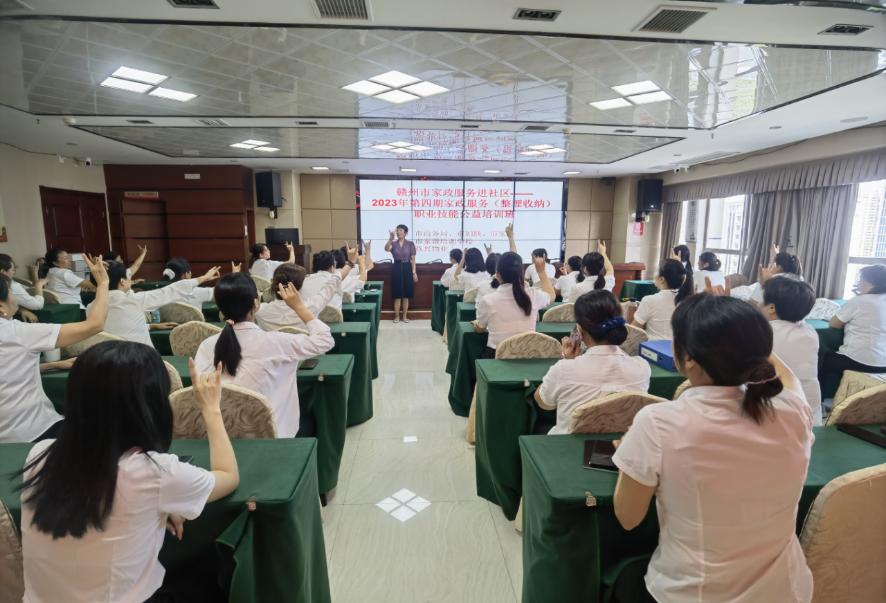 為進(jìn)一步豐富廣大女職工業(yè)余生活,提高整理收納技能,打造溫馨治愈的生活環(huán)境,提升家居幸福感。8月17日上午,由市商務(wù)局、市婦聯(lián)、市家協(xié)主辦,燕興物業(yè)承辦的贛州市家政服務(wù)進(jìn)社區(qū)2023年第四期家政服務(wù)(整理收納)職業(yè)技能公益培訓(xùn)班于在燕興物業(yè)大會議室舉辦。公司各部門及贛州中心城區(qū)女性職工近50余人參加了培訓(xùn)。本次培訓(xùn)班由鴻運(yùn)家政高級培訓(xùn)講師楊小梅主講。