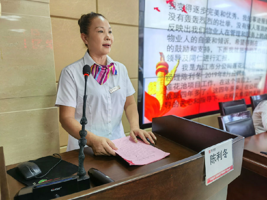 總經理江渭平也表示,陳利冬同志的先進事跡給公司帶來了寶貴的精神財富,為企業精神鑄了魂,希望大家能夠以她為榜樣,不斷提高自己的業務能力和綜合素質,為公司的蓬勃發展和提高業主安全感、幸福感和獲得感而做出更大的貢獻。