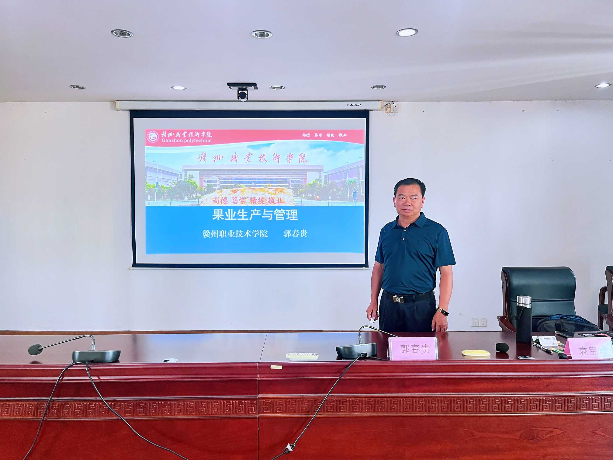在專題講座環(huán)節(jié),學(xué)校特邀業(yè)內(nèi)權(quán)威專家授課,為學(xué)員們帶來了一場場 “知識盛宴”。贛州職業(yè)技術(shù)學(xué)院正高級講師郭春貴老師,同時身兼贛州市百名農(nóng)業(yè)專家、贛州市科普大使、江西省教育督導(dǎo)專家、省科技評審專家等多重身份,他憑借豐富的理論知識和實(shí)踐經(jīng)驗(yàn),圍繞園林花卉、果樹、蔬菜生產(chǎn)技術(shù)指導(dǎo)等核心內(nèi)容進(jìn)行深入淺出的講解,幫助學(xué)員們系統(tǒng)更新理論儲備,拓寬專業(yè)視野。此外,信豐縣農(nóng)伯樂蔬菜專業(yè)合作社理事長賴煥華也結(jié)合自身創(chuàng)業(yè)經(jīng)歷,分享了蔬菜種植管理、合作社運(yùn)營等實(shí)戰(zhàn)經(jīng)驗(yàn),為學(xué)員們提供了接地氣的實(shí)用技巧。