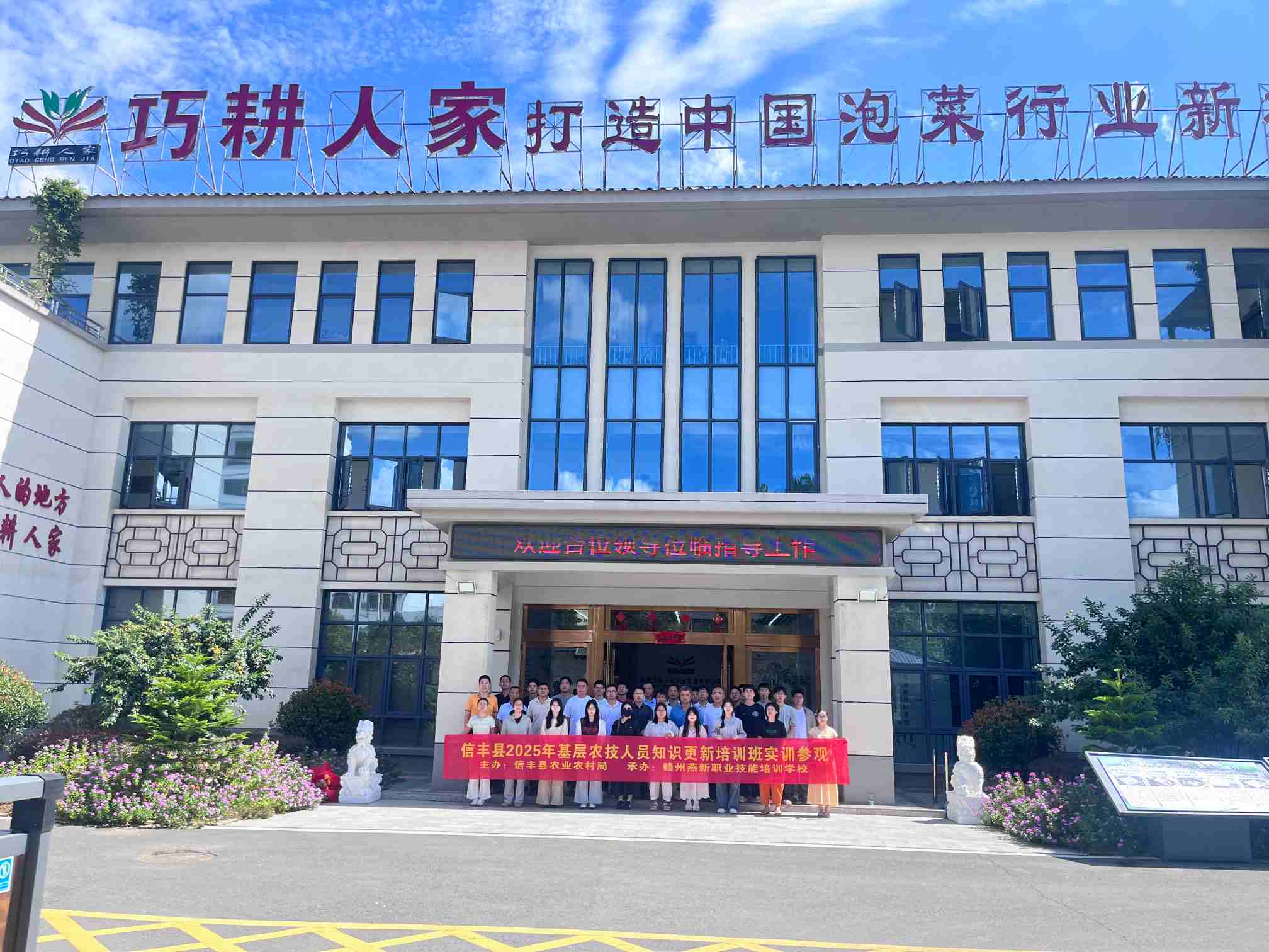 現(xiàn)場教學(xué)環(huán)節(jié)更是讓學(xué)員們直呼 “收獲頗豐”。在學(xué)校的精心安排下,學(xué)員們先后走進(jìn)多家知名農(nóng)業(yè)企業(yè)和示范基地,近距離學(xué)習(xí)先進(jìn)技術(shù)和管理經(jīng)驗(yàn):在贛州巧耕人家農(nóng)業(yè)發(fā)展有限公司,大家深入蔬菜種植基地和加工廠,詳細(xì)了解農(nóng)產(chǎn)品加工與銷售流程,重點(diǎn)學(xué)習(xí)了乳酸菌發(fā)酵菜腌制工藝技術(shù),掌握了提升蔬菜附加值的實(shí)用方法;在尋烏縣羊角園果蔬有限公司,學(xué)員們實(shí)地考察特色農(nóng)業(yè)種植模式,學(xué)習(xí)了特色果蔬品種選育、高效栽培等先進(jìn)技術(shù);在江西果然食品有限公司和安遠(yuǎn)縣橙皇現(xiàn)代農(nóng)業(yè)發(fā)展有限公司,大家聚焦農(nóng)產(chǎn)品加工技術(shù)與品牌營銷,探索了從 “田間” 到 “餐桌” 的產(chǎn)業(yè)鏈打造路徑;在中國贛南臍橙產(chǎn)業(yè)園(安西)及柑橘農(nóng)業(yè)科技示范基地,學(xué)員們沿著贛南臍橙的發(fā)展歷程,學(xué)習(xí)了臍橙標(biāo)準(zhǔn)化種植、病蟲害綠色防控等先進(jìn)技術(shù),深刻感受到特色產(chǎn)業(yè)對鄉(xiāng)村振興的帶動作用;在中科微至&江西綠萌智能裝備(華南)制造中心項(xiàng)目現(xiàn)場,大家參觀了果蔬采后處理設(shè)備、設(shè)施農(nóng)業(yè)裝備生產(chǎn)基地,直觀了解了智能裝備在農(nóng)業(yè)生產(chǎn)中的應(yīng)用,認(rèn)識到科技賦能農(nóng)業(yè)的重要性;最后,在信豐金海農(nóng)業(yè)服務(wù)專業(yè)合作社糧油基地,學(xué)員們學(xué)習(xí)了糧油作物主導(dǎo)產(chǎn)業(yè)主推技術(shù),為今后開展糧油生產(chǎn)技術(shù)推廣工作奠定了堅實(shí)基礎(chǔ)。