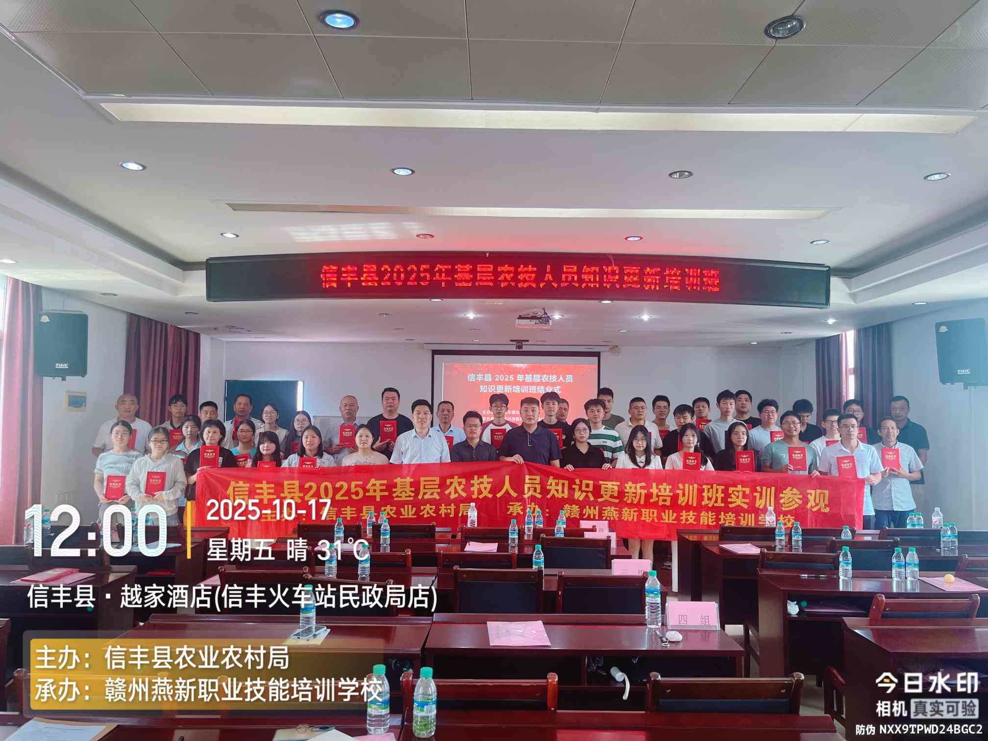 2025 年 10 月 13 日至 17 日,一場為期 5 天的基層農(nóng)技人員知識更新培訓(xùn)班在信豐縣順利開展并圓滿收官。本次培訓(xùn)由贛州燕新職業(yè)技能培訓(xùn)學(xué)校精心組織,不僅為當(dāng)?shù)剞r(nóng)技推廣人員搭建了專業(yè)提升的平臺,更成為推動信豐縣農(nóng)業(yè)高質(zhì)量發(fā)展、助力鄉(xiāng)村振興的生動實(shí)踐。