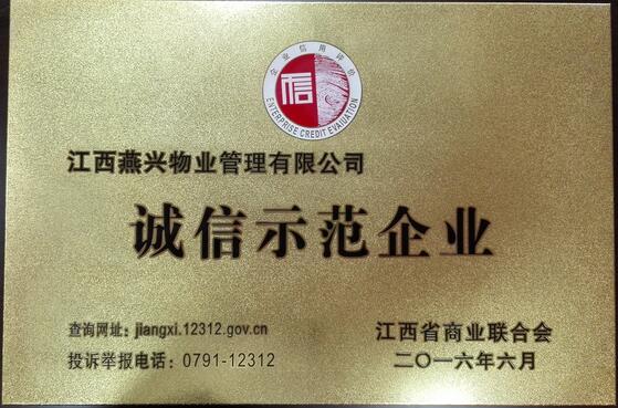 熱烈祝賀江西燕興物業榮獲“誠信示范企業”榮譽稱號8月4日,在江西省南昌市舉辦了“2016年全省商務領域信用建設工作培訓會”,會上宣讀了贛商聯【2016】01號“關于授予2015年江西省商貿流通服務業誠信... 2016-08-09