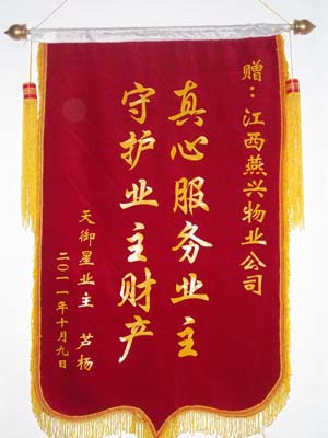 感謝信 江西燕興物業管理有限公司: 我是“天御星”小區3棟9A的業主蘆楊,于9月10日凌晨開車回家,上樓時按錯了遙控器車鎖,把后備箱打開了(... 2011-11-01