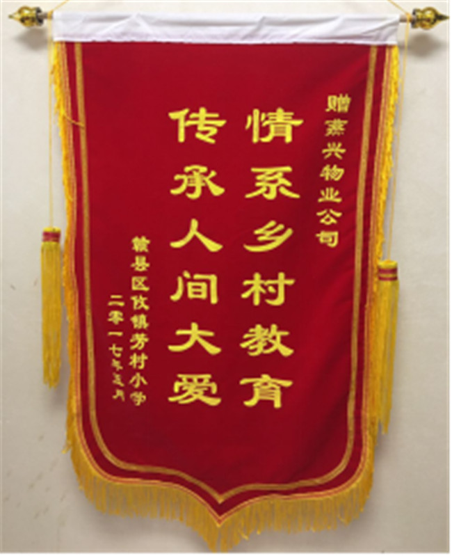 16、2017年5月贛縣區(qū)攸鎮(zhèn)芳村小學贈予燕興物業(yè)“情系鄉(xiāng)村教育 傳承人間大愛”錦旗。